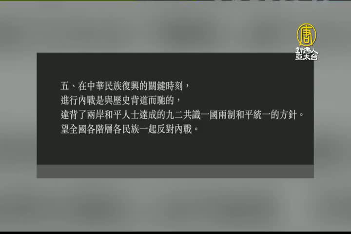 【新唐人亞太台 2021 年 11 月 08 日訊】上週,中共將3名台灣政府官員列為黑名單,被國際社會當笑話談之後,週六,網絡流傳一份來自中國大陸民主黨派、和平反內戰人士的「反內戰宣言」,其中列出5條北京不應該攻打台灣的理由。立委今天表示:中國有志之士一直都希望中國更好、更文?,只是這樣的聲音,遭中共打壓。