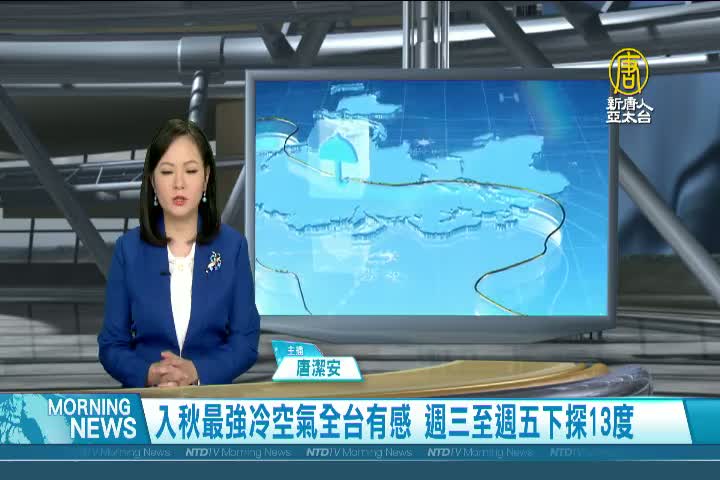 【新唐人亞太台 2021 年 11 月 09 日訊】歡迎您收看11月9日的早安新唐人,我是唐潔安,先來帶您關心天氣。冷空氣來襲,各地明顯轉涼,北臺灣及宜蘭不超過20度,花東21至23度,中南部仍有26至28度,但日夜溫差較大,週三至週五氣溫再下降,北部低溫降至13至15度,是這波冷空氣威力最強的時候,其他地方,早晚也較涼;各地降雨會明顯減少。帶您一起來看到國際媒體重要訊息。