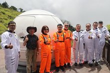2023-07-03 16:09:25南投縣政府斥資百萬在鳶峰星空平台打造的鳶峰圓頂遠端天文觀測系統,2日隆重揭幕啟用,副縣長王瑞德及出席貴賓身穿太空人服裝,化身為星際領航員,並宣告南投獨特的天文觀星旅遊正式邁向新的里程碑,未來將正式開放對外營運。