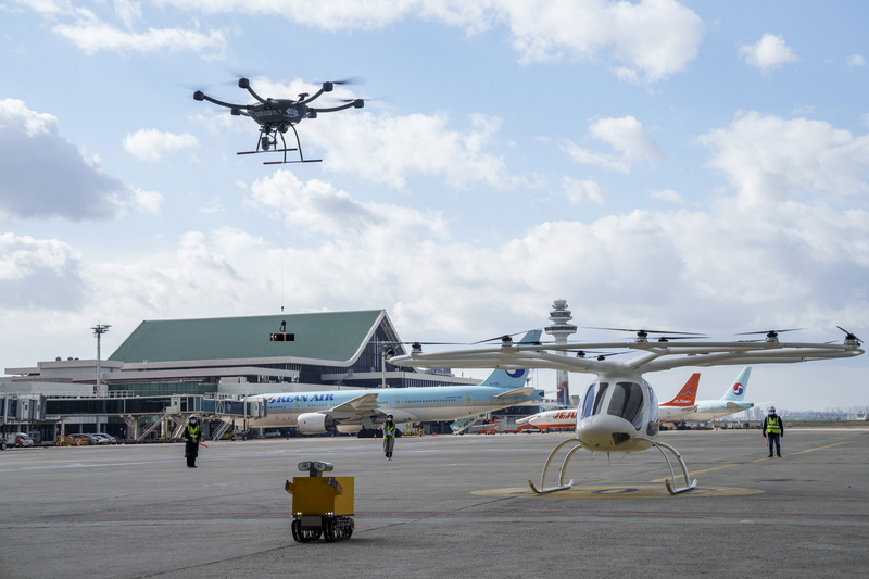 韓國國土交通部11日於金浦機場舉行都市型空中交通(UAM)綜合驗證活動,檢視既有航空安全系統與UAM飛行機通訊狀況。(圖/韓國國土交通部提供)