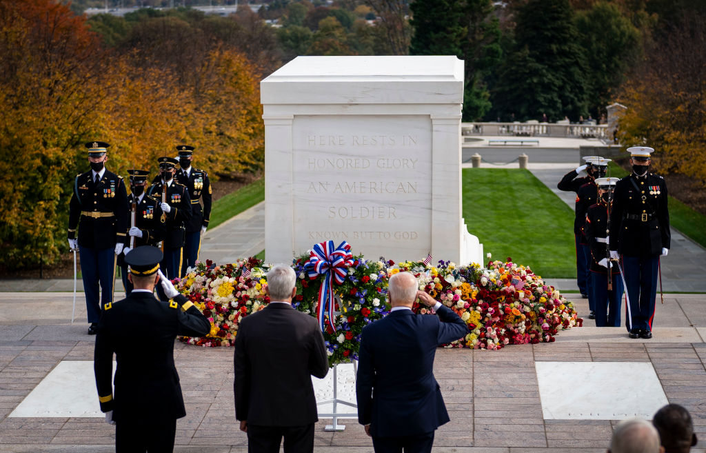 這場儀式也適逢無名戰士塚(Tomb of the Unknown Soldier)設立100週年紀念日,拜登在典禮上說:「我們的退伍軍人是美國精神最佳代表。」