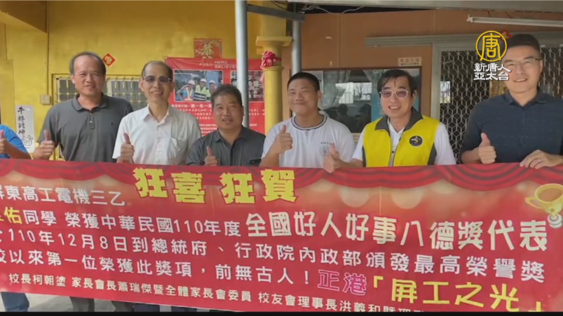 【新唐人亞太台 2021 年 11 月 12 日訊】今年(2021年)全國好人好事八德獎中,有一位17歲的青少年獲選,他是屏東高工的學生黃詮佑,每到假日就跟著父親到處補路,填補坑洞,10年來從不缺席。看著一個個的坑洞被填平,黃詮佑說很有成就感,也希望大家都能一起來。