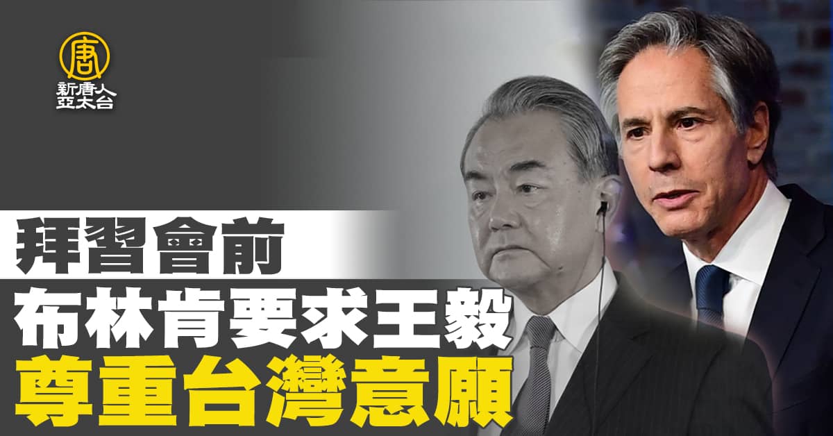 【新唐人亞太台 2021 年 11 月 15 日訊】焦點話題,美國總統拜登和中共國家主席習近平,即將在台北時間週二舉行視訊會議,台灣外交部表示,已有掌握,美方也已經向我方進行事前簡報,而在會議前夕,美國國務卿布林肯先與中共外長王毅通話,王毅老調重彈,再拋出反「台獨」的說法;布林肯則提及台海和平穩定的長期利益,並對中共持續在軍事、外交、經濟層面對台灣施壓表示關切,他呼籲中方依據台灣人民的利益和意願,與台灣展開有意義對話。