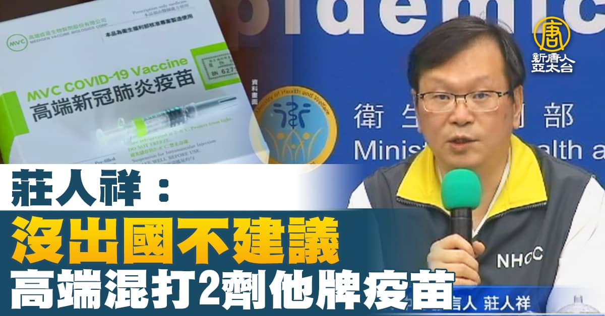 【新唐人亞太台 2021 年 11 月 15 日訊】有出國需求、已打高端疫苗者,可混打2劑他牌疫苗,國內有醫師擔心共打4劑疫苗可能抗體過高,指揮中心發言人莊人祥今天提醒已施打2劑高端者,若無出國需求,不建議再接種疫苗。