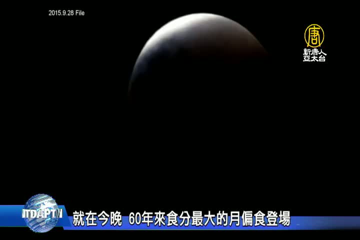 【新唐人亞太台 2021 年 11 月 19 日訊】今天傍晚將出現1939年以來,食分最大的月偏食。中央氣象局官方臉書粉專說,這次月偏食,最大覆蓋率接近98%;而且還是「月出帶食」,就是在月亮剛出來的時候,就是月亮被吃掉最多的時候,兩小時內,隨著月升,血月漸退、月亮也會逐步復圓。不過,這次月食過程,月亮的高度都比較低,建議觀眾朋友要選擇沒有遮蔽物的地點,比較容易觀賞。