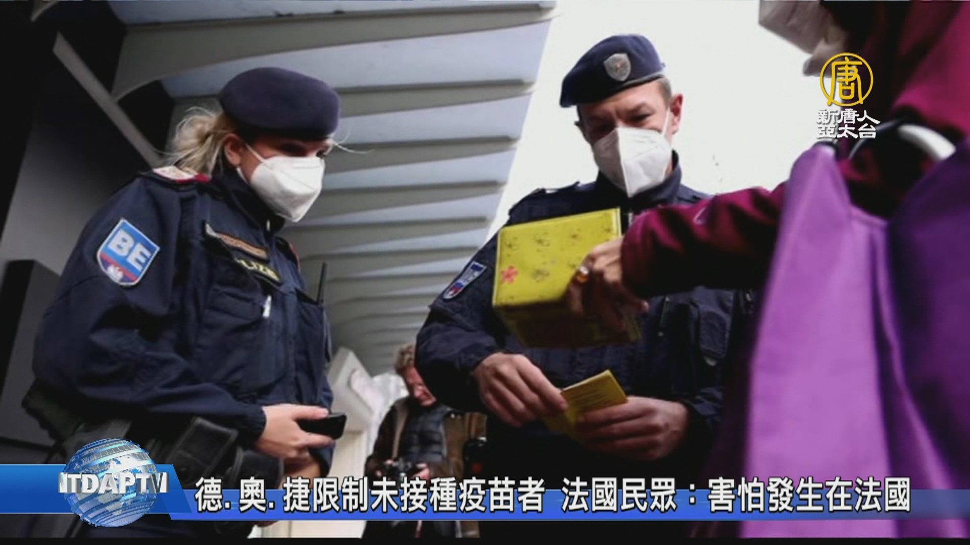 【新唐人亞太台 2021 年 11 月 19 日訊】歐洲包括奧地利、德國、捷克等國,先後宣布,對沒有打疫苗的人採取限制。奧地利對未接種者實施禁足令,引發法國民眾在奧地利駐巴黎大使館前抗議,法國總統馬克宏則表示,不會封鎖沒有打疫苗的人,但事實上,法國已經要求進入餐館,或坐長途火車等,都需提供疫苗接種證明或陰性檢驗報告。