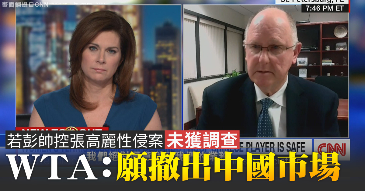 中國知名網球女將彭帥,11月2日在微博上指控曾被中共前副總理張高麗性侵後,中共迅速封鎖了相關消息,甚至切斷外媒的電視訊號。不過,國際關注彭帥的聲浪越來越大,多個世界性網球組織,呼籲北京當局對張高麗,進行全面、透明的調查。WTA世界女子職業網球協會主席西蒙(Steve Simon)18日表示,如果彭帥事件最終未獲得適當調查,WTA將不計數億美元損失,撤出在中國的業務。