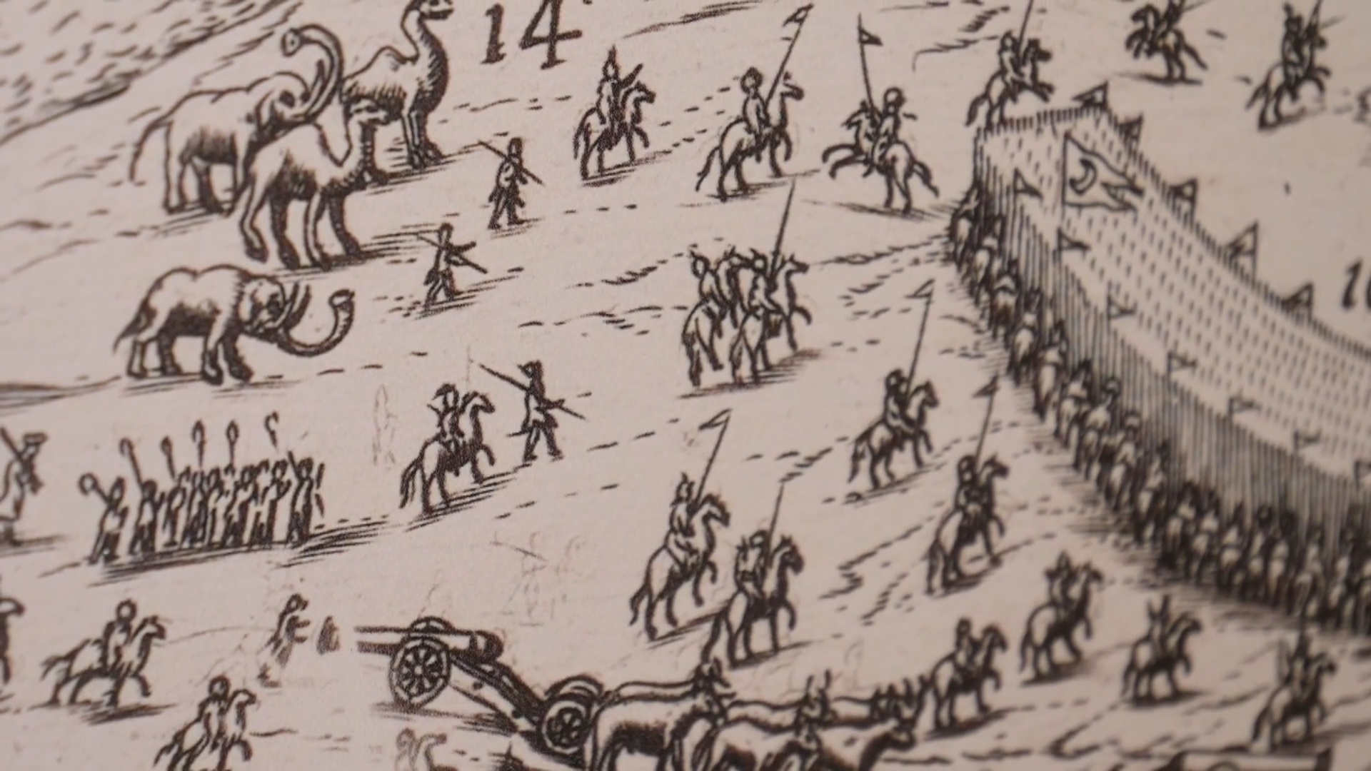 展覽再現了400年前這場戰役中的武器裝備。當時最先進的武器,除了大砲,還有大象和駱駝。