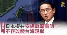 日媒:日本擬在安保戰略載明 不容改變台海現狀