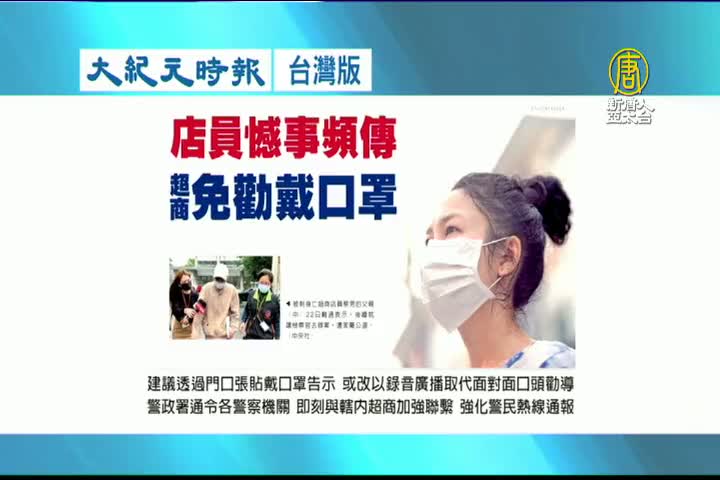 【新唐人亞太台 2021 年 11 月 23 日訊】接著看到大紀元時報台灣版報導:超商店員因勸導戴口罩,遭刺殺身亡,指揮中心表示,改以告示和廣播代替口頭勸導,降低發生衝突風險。