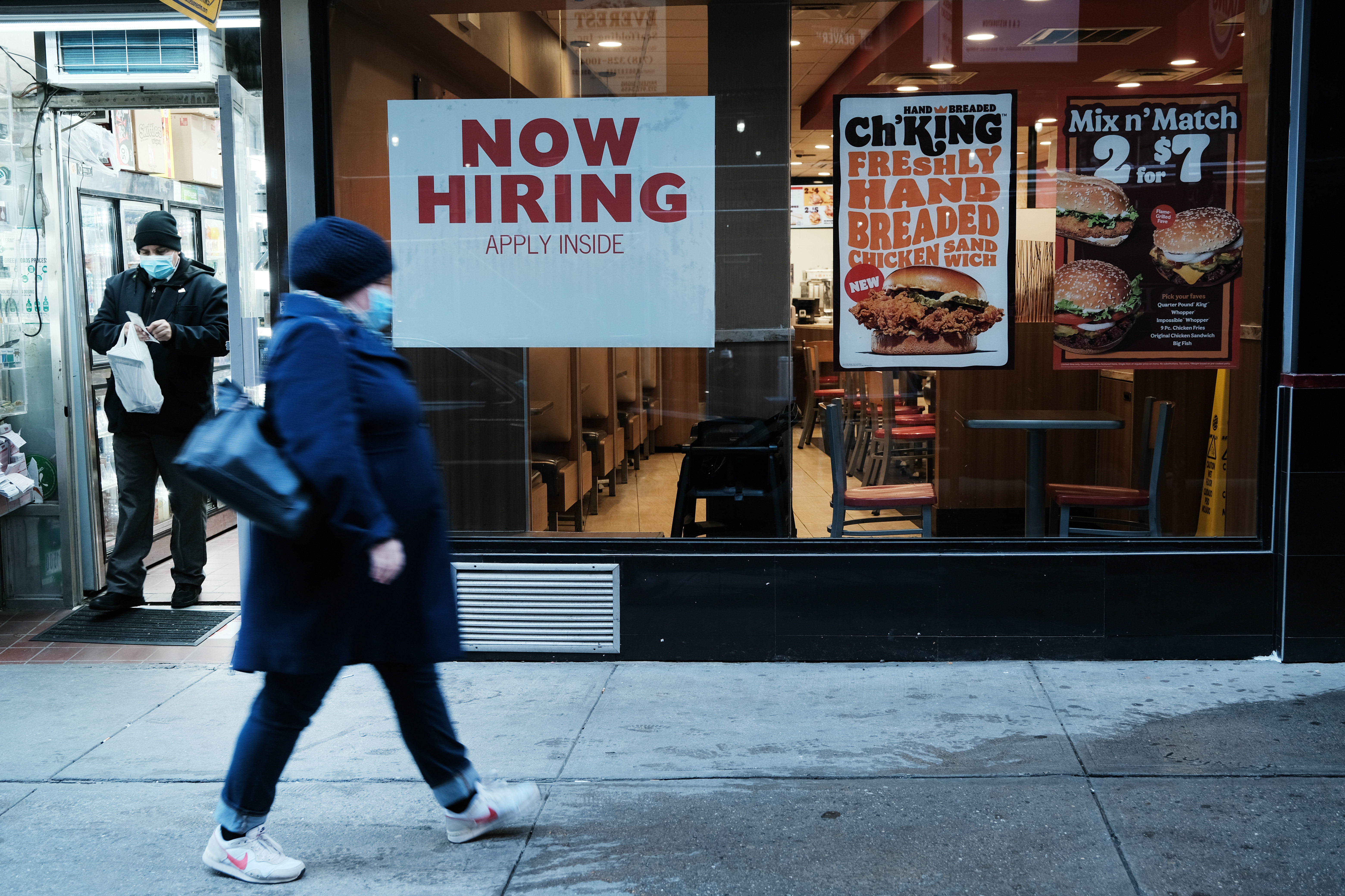 美國新申請失業救濟金人數上週降至52年來最低點,意味隨著供應短缺、高度通貨膨脹和疫情肆虐的一年來到尾聲,經濟復甦正逐漸加速。示意圖(圖/GettyImages)