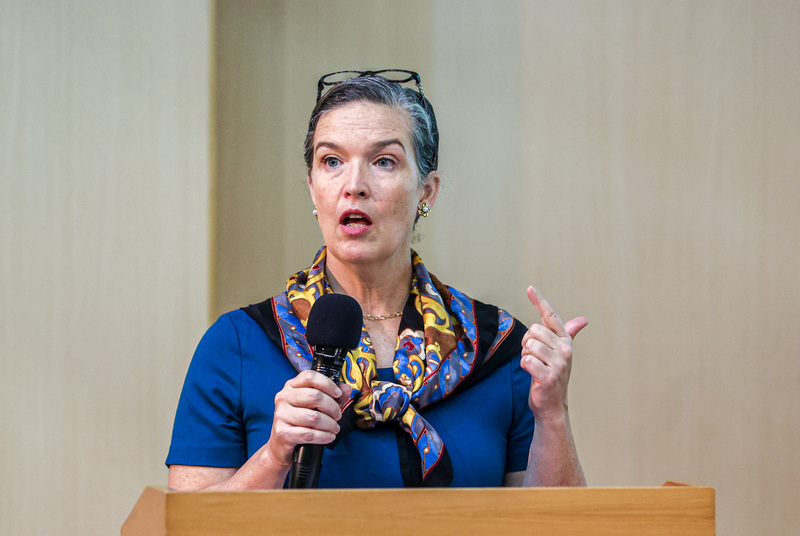 中華民國國際關係學會26日舉辦年會,美國在台協會(AIT)處長孫曉雅受邀就「美國、台灣及泛印太地 區:挑戰與契機」主題發表演說。(圖/中央社)
