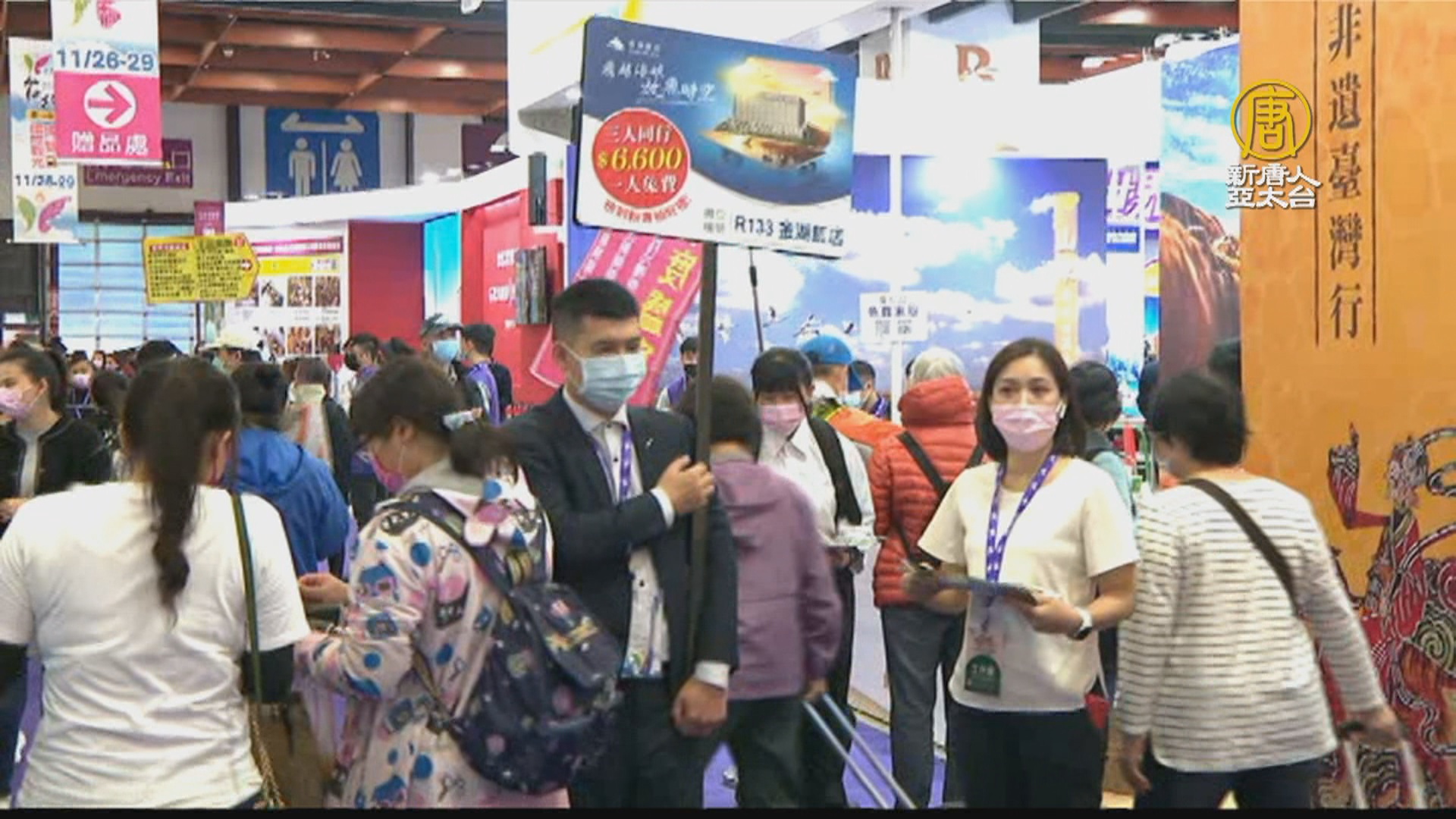 民眾湧入旅展詢問行程,明明是平日,攤位卻大排長龍,大家都被疫情悶到,想趁跨年、中國新年到處走走。