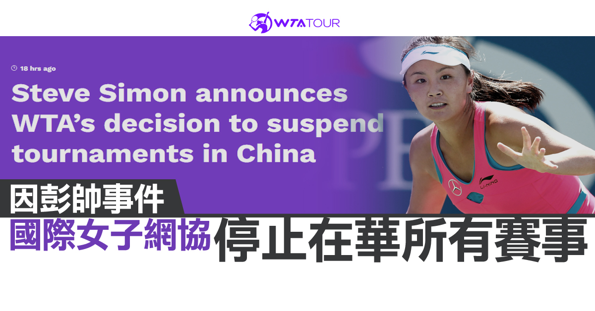 針對中國女子網球名將彭帥指控中共前政治局常委張高麗性侵一事,週三,國際女子網球協會主席西蒙(Steve Simon)發聲明,正式宣布暫停在中國地區的所有相關賽事。