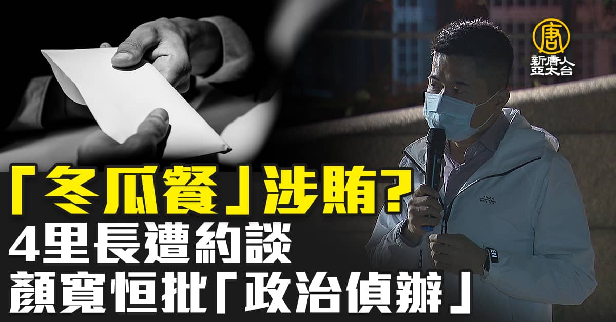 【新唐人亞太台 2021 年 12 月 03 日訊】中二選區立委補選,國民黨顏寬恒出席的說明會,都會有人張羅美食,而且非常豐盛,被地方人士稱為「冬瓜餐」。12月2日檢警調約談4名里長和22名里民,查證資金來源。對此,顏寬恒痛批這是「政治偵辦」,標準不一。但對手林靜儀反虧,餐食資金來源,由誰提供?檢調本來就該查。