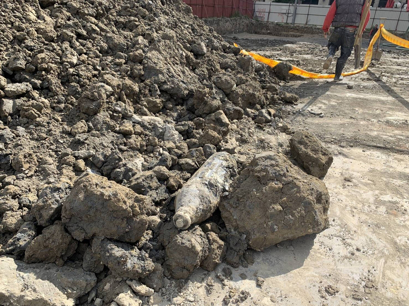 新北市政府警察局新莊分局中午12時許接獲56歲吳姓工地經理通報,指新莊區幸福東路上的某知名連鎖賣場工地,於進行整地挖掘地基過程中發現一顆疑似未爆彈。
