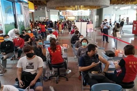 今天首日開打,又適逢假日,9點開始各站陸續出現排隊人潮,在現場人員引導下,施打狀況非常良好。