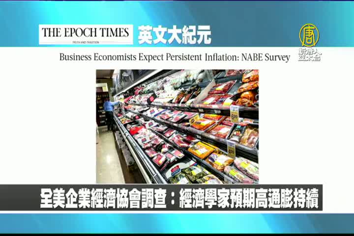 【新唐人亞太台 2021 年 12 月 07 日訊】首先來看到美國大紀元英文版報導:全美企業經濟協會(NABE)預期,美國今年第四季通膨率將擴大至6%,大於9月預期的5.1%,並估計通膨率最快要到2023年下半年才會回到聯準會設定的目標2%。