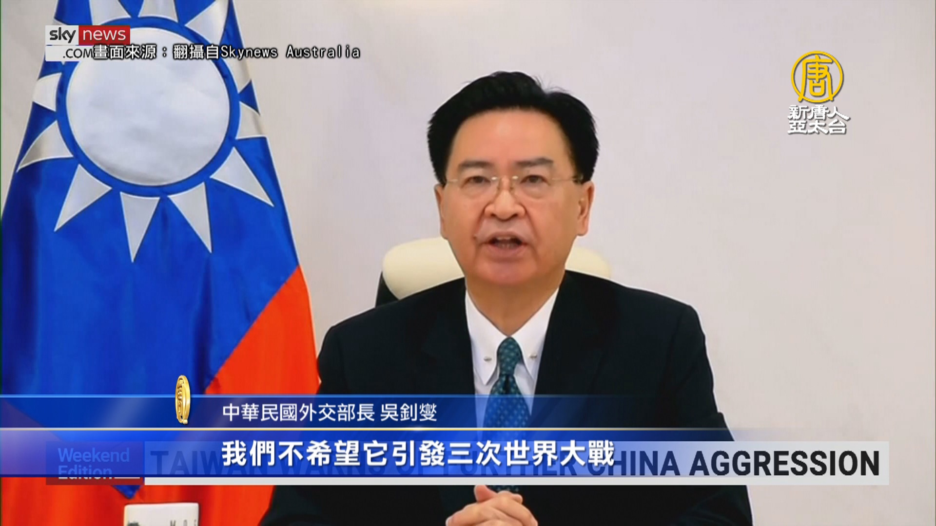 澳洲天空新聞(source:Skynews Australia )5日報導,中華民國外交部長吳釗燮(Joseph Wu)接受澳洲前國防部長潘恩(Christopher Pyne)專訪時,警告各國提防,中共奉行武力擴張,恐將引發第三次世界大戰;中共的領土主張,跟引發二次大戰的政權所主張,幾乎一樣,聲稱擁有東海、台海、台灣、整個南海、又和印度發生邊境衝突。中共用國安法剝奪香港自由後,持續向印太擴張,路徑必須穿過第一島鏈,台灣非常關鍵。