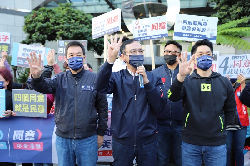 重啟核四、反萊豬、公投綁大選、三接遷離等四大公投將於18日投票,國民黨近日在全台各地舉辦說明會,向民眾訴求四個都同意的主張,但部分藍營縣市首長如侯友宜,對四大公投態度不明,也引發黨內質疑與雜音。