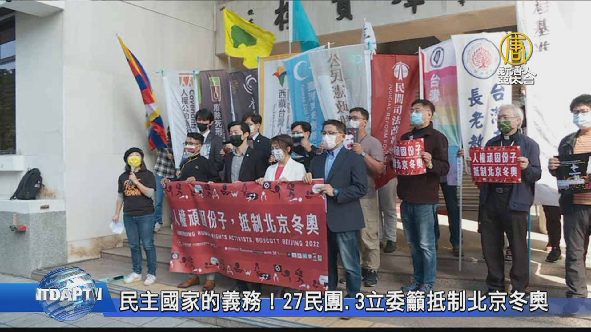 【新唐人亞太台 2021 年 12 月 08 日訊】今天(8日)在立法院外,有27個NGO組織共同召開記者會,呼籲台灣政府針對「抵制北京冬奧」,盡快做出相關回應。