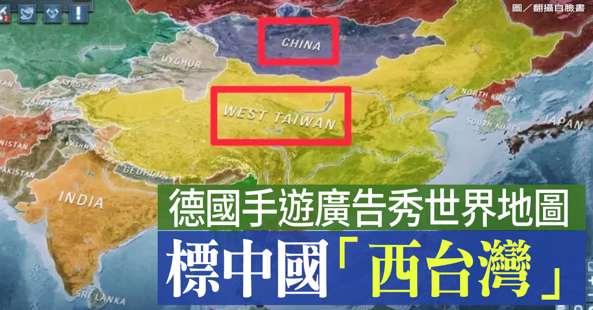 諷共風潮!德手遊廣告秀世界地圖標中國「西台灣」