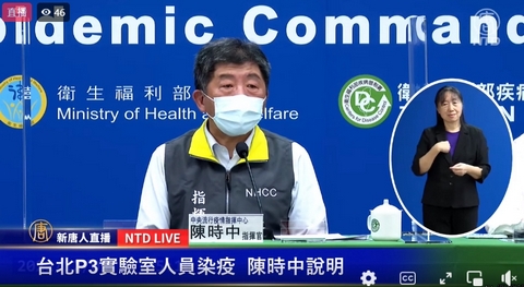 【新唐人亞太台 2021 年 12 月 09 日訊】台灣本土0確診連34天劃下句點!台北市南港P3實驗室於今(9)日驚傳確診的消息,一名20多歲的女工作人員,疑似在做實驗的過程中不幸感染,甚至在一週前就出現了咳嗽的症狀,並於8日前往就醫,今日確認結果為陽性,而該個案也已打完2劑莫德納,Ct值15。陳時中在晚間21:00召開記者會做出相關說明。