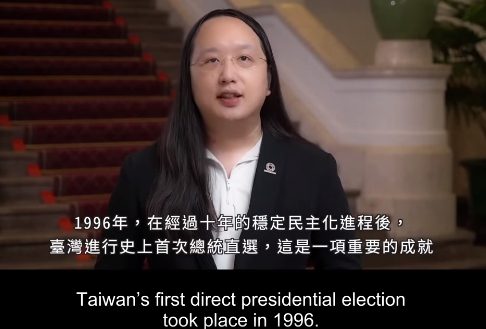 她說,台灣民主方興未艾之際,始終堅定站在全球對抗威權主義的最前線,更在促進全球自由、民主和人權上,扮演領導角色。