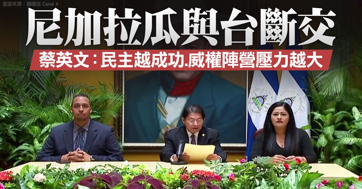 尼加拉瓜與台斷交 總統:民主越成功.威權陣營壓力越大