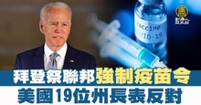 拜登祭聯邦強制疫苗令 美國19位州長表反對