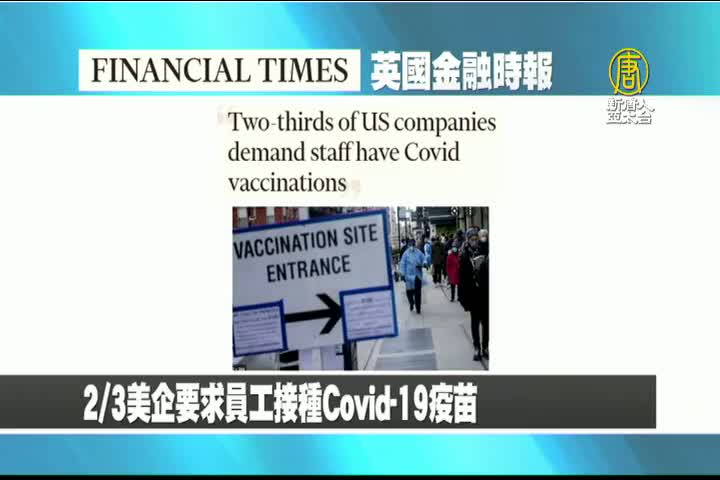 【新唐人亞太台 2021 年 12 月 14 日訊】接著是英國金融時報的報導:三分之二的美國企業要求員工接種Covid-19疫苗。