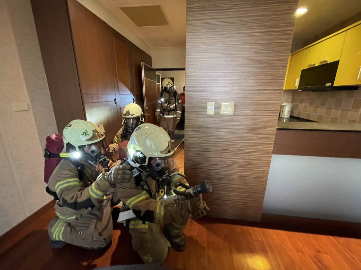 丁春能強調,各場所秉持「自己財產、自己保護」的防災理念,加強並落實自衛消防編組訓練,消防局也將在年節前,推行轄內各集中檢疫場所消防搶救演練,以確保檢疫民眾能住得安心。