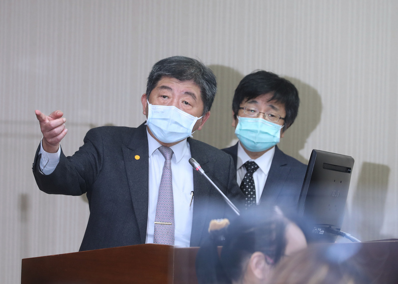 台北市防疫旅館近日接連發現同樓層旅客確診COVID-19,指揮中心正在比對基因定序釐清感染源,今天下午也會派專家進駐調查可能感染情形。 陳時中(圖左)表示,目前基因定序仍在進行中,暫時無法判定是單獨事件還是群聚感染,下午就會派專家團隊進駐檢視環境狀況,尋找可能感染途徑。資料照。(圖/中央社)