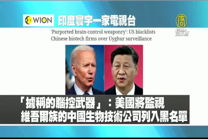 【新唐人亞太台 2021 年 12 月 17 日訊】最後是印度寰宇一家電視台報導:美國將監視維吾爾族的中國生物技術公司列入黑名單,包括跟中國軍事醫學科學院及其 11 個研究機構的貿易都受到美國商務部的限制。