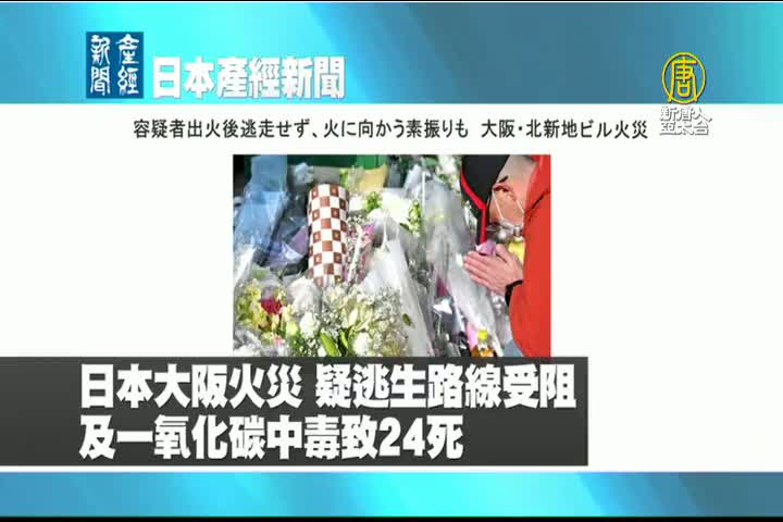 【新唐人亞太台 2021 年 12 月 20 日訊】來看到日本產經新聞報導:日本大阪火災,疑似逃生路線受阻及一氧化碳中毒,導致24人死亡。