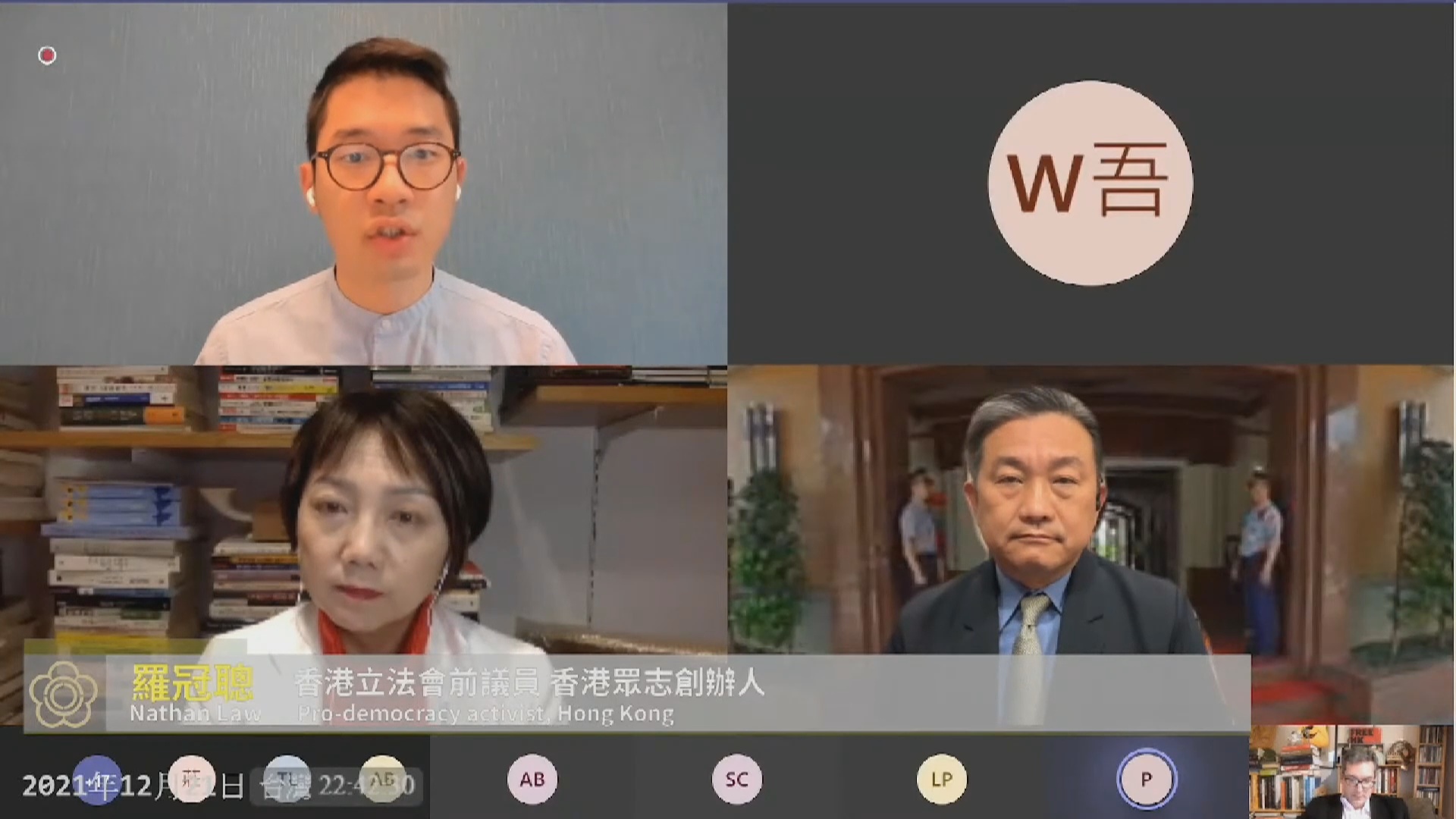 立法院人權促進會昨晚舉辦線上公聽會「香港的走向以及台灣的對應—香港議題」。流亡海外的香港民主運動成員羅冠聰(左上)與張崑陽呼籲台灣政府應更積極推動港人在台安置。(圖/翻攝自YT@立法院人權促進會TPHRC)