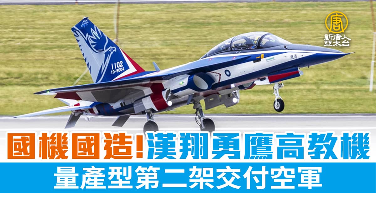 【新唐人亞太台 2021 年 12 月 22 日訊】來看到,國機國造有新進展,漢翔公司為空軍打造的勇鷹新式高教機進入量產階段。今天(22日)第二架勇鷹高教機正式交付給空軍,包括原型機還有先前移交給空軍的第一架飛機,在台東外海上空會合,進行三機編隊低空衝場。