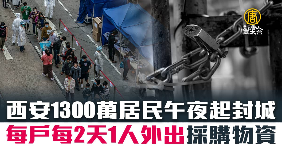 西安1300萬居民午夜起封城 每戶每2天1人外出採購物資