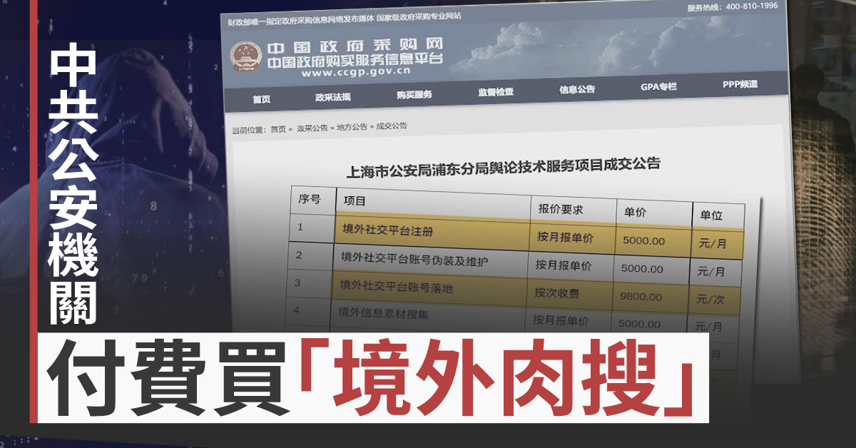 引人注意的是,招標書內一個叫做「境外社交平台帳號落地」服務項目。「落地」意思是追蹤帳戶背後的真實使用者,也就是俗稱的「人肉搜索」。