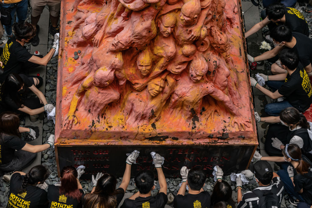 國殤之柱(圖)共有5座,其中有一座用來紀念六四天安門事件,上面雕刻有多個身軀扭曲且面容呈現痛苦人像,用來象徵遭到血腥鎮壓的追求民主相信中共的死難者們,基座上刻有「六四屠殺」和「老人豈能夠殺光年輕人」等紀念字,用意提醒人們勿忘血腥天安門屠殺,歷史永遠不該被遺忘。資料照。(圖/GettyImages)