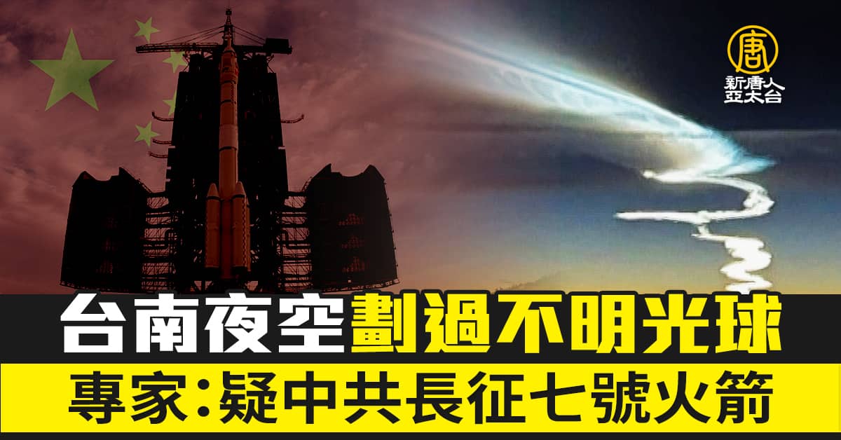 台南夜空劃過不明光球 專家:疑中共長征七號火箭