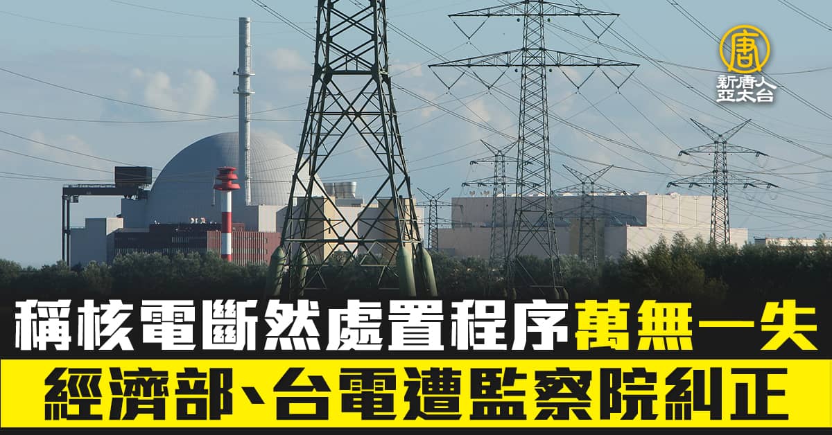經部台電稱核電斷然處置程序萬無一失 遭監院糾正