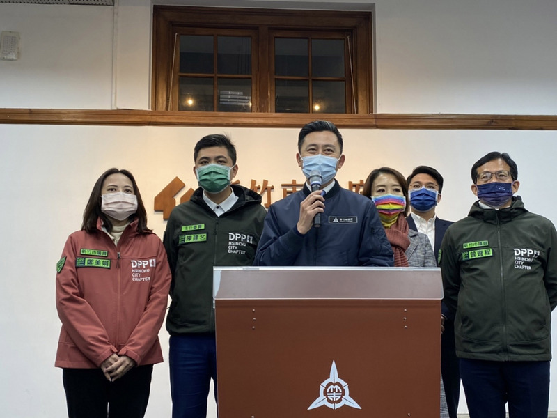 新竹市長林智堅(左3)27日晚間宣布不參選2022「竹竹併」後大新竹市長,對於媒體提問下一步動向,林智堅說,先不討論,現在關鍵是推動修地方制度法,促成大新竹合併升格。(圖/中央社)