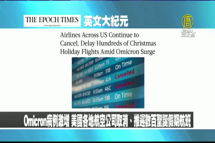 【新唐人亞太台 2021 年 12 月 28 日訊】首先來看到美國大紀元英文版報導:Omicron病例激增,美國各地航空公司取消、推遲數百聖誕假期航班。