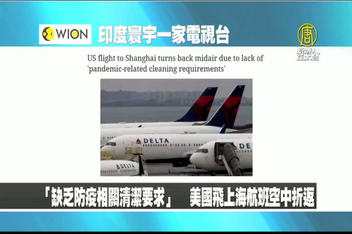 【新唐人亞太台 2021 年 12 月 28 日訊】最後是印度寰宇一家電視台報導:由於上海機場「沒有疫情相關的清潔要求」,美國達美航空一架從西雅圖起飛的航班在半空中折返,引發中國駐舊金山總領事館的抗議。