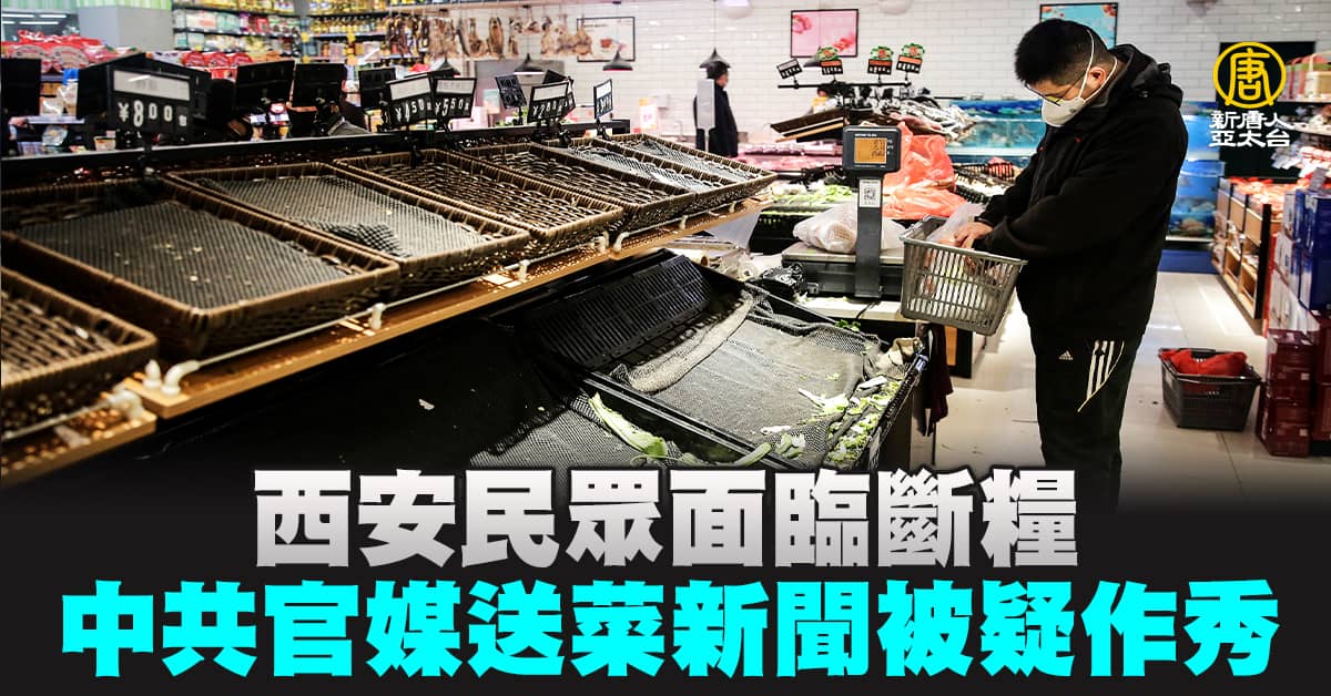 【新唐人亞太台 2021 年 12 月 29 日訊】中國新一輪本土疫情爆發,陝西省西安市近1300萬居民,被中共要求居家隔離已經7天,原本「2天1人外出採購」的措施,也在27日被當局臨時叫停。大多西安民眾被困在家中,糧食幾乎用盡,甚至連泡麵都快吃不上,當地媒體報導政府如何派送物資,被西安人質疑是作秀。