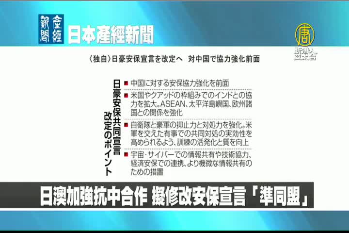 【新唐人亞太台 2021 年 12 月 30 日訊】來看到日本產經新聞報導:日本與澳洲加強對抗中共合作,有意修改安保宣言提升到「準同盟」。