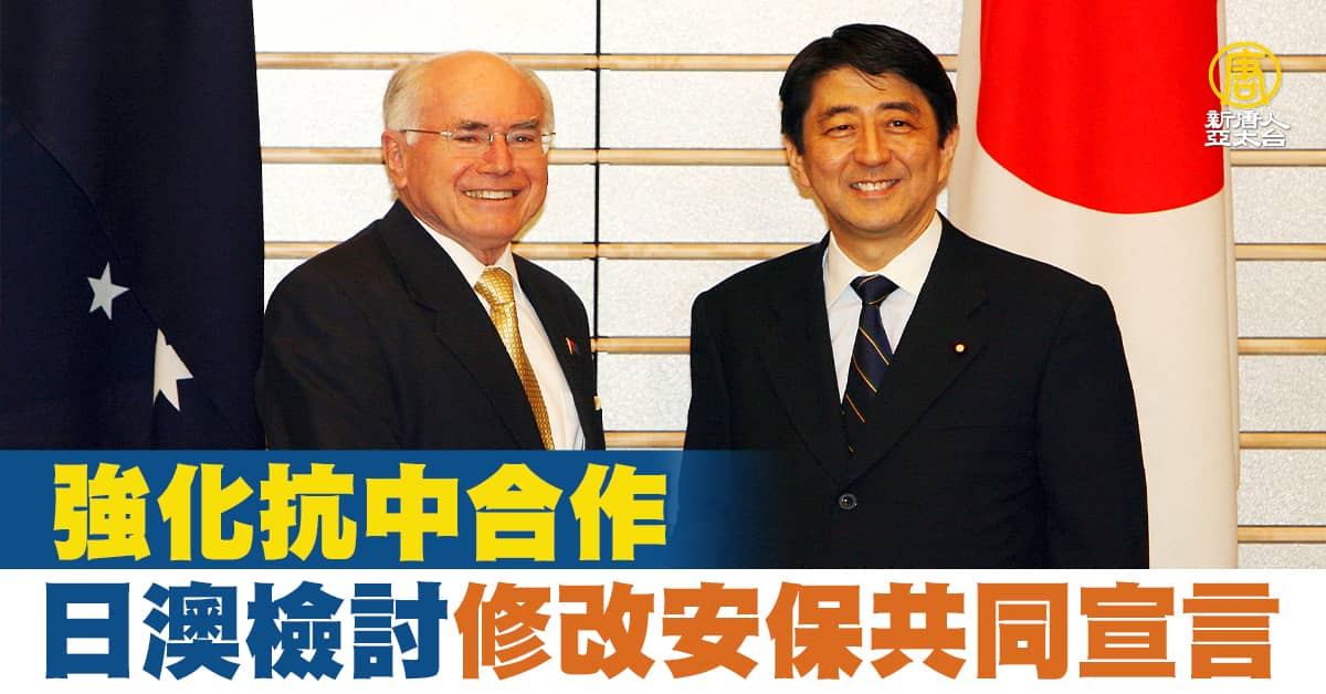 「產經新聞」報導,日本與澳洲政府正在檢討修改「日澳安全保障共同宣言」,現行宣言主要是針對北韓核武、飛彈及反恐等安保合作為中心,並未觸及中國威脅的對應,透過修改宣言,揭示強化抗中合作為重點。著眼於中國武力犯台等突發事態時提高共同應對能力,把日澳安保合作提升至新層次。