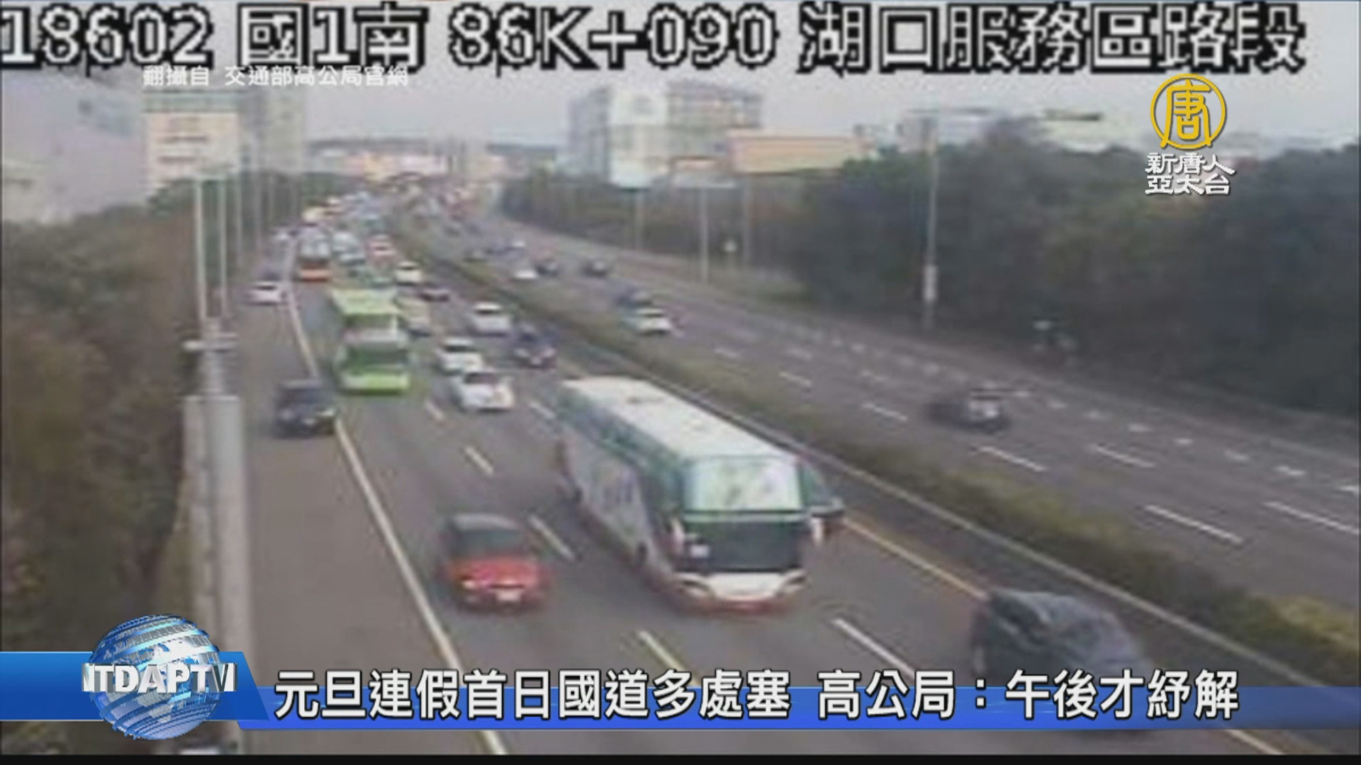 【新唐人亞太台 2021 年 12 月 31 日訊】今天跨年夜,也是元旦三天連假的第一天,不少人一早就出門展開「跨年之旅」,西部國道上午7點後就有瓶頸路段逐漸開始塞車,上午9點後車輛持續增加,壅塞路段也擴大。上午9點後,國道1號湖口服務區、國3鶯歌系統-龍潭、和美-彰化系統、烏日-霧峰等路段,出現時速低於40公里的壅塞情況。高公局預估,西部國道車潮要到中午過後才會開始減少,壅塞情況可望逐漸紓解。另外國5南向車潮,恐怕到下午4點才會紓解。