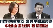 外媒關注蔡英文習近平新年談話 中國面臨經濟.疫情難題